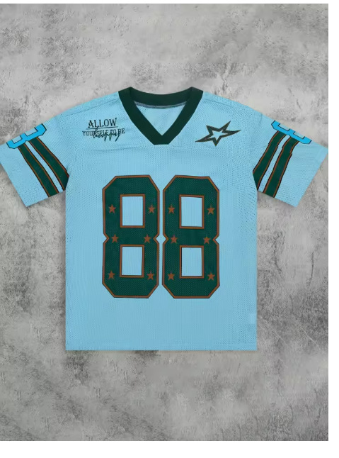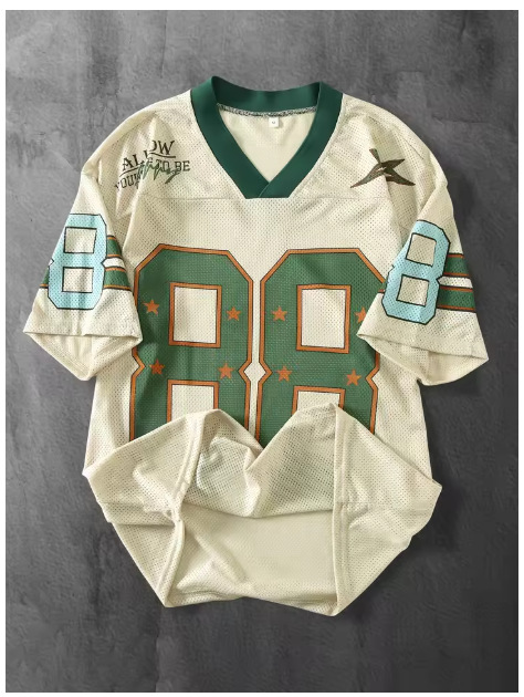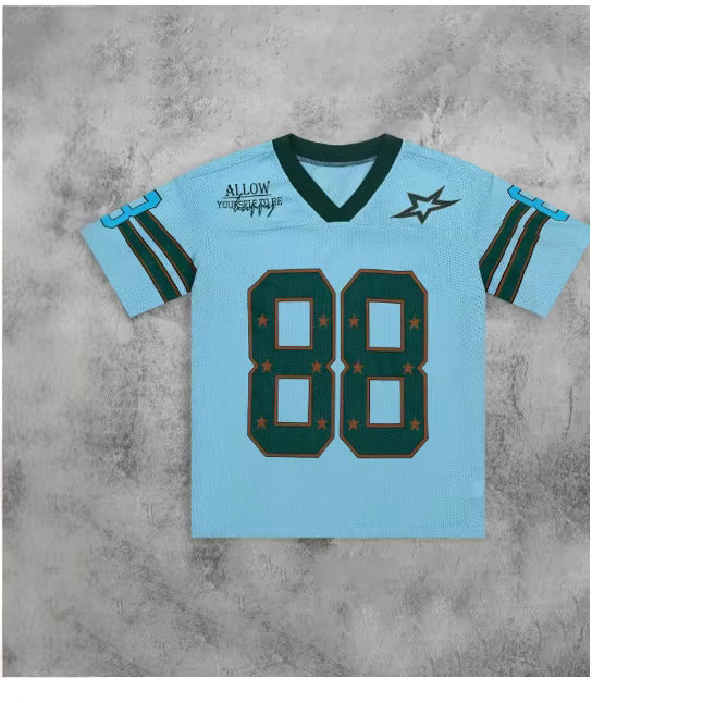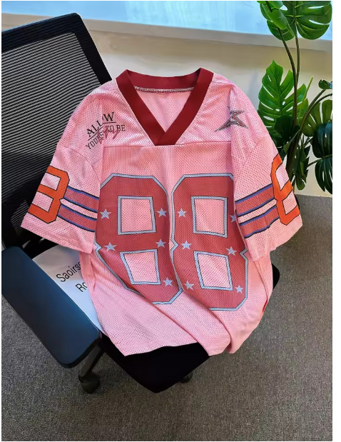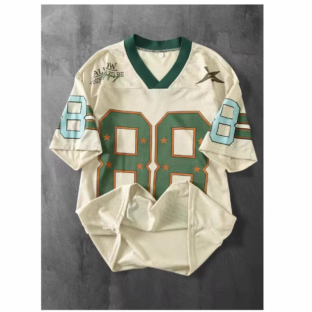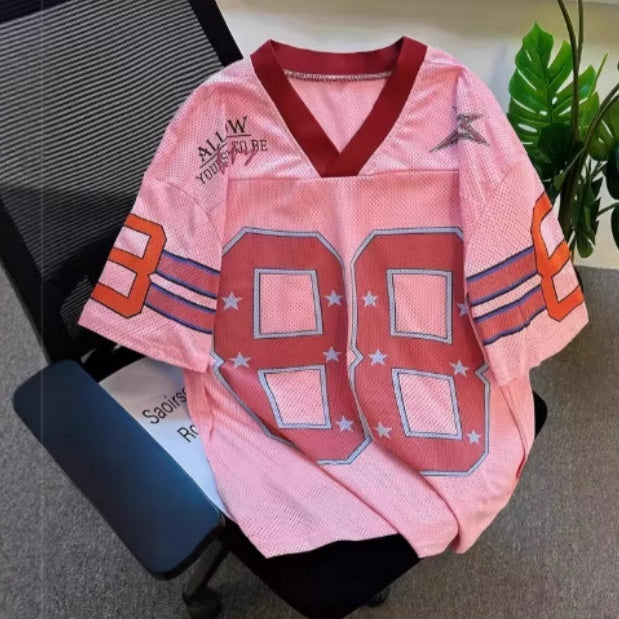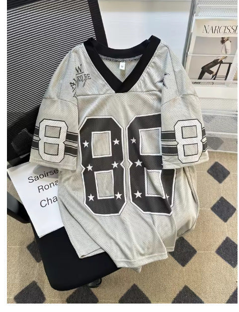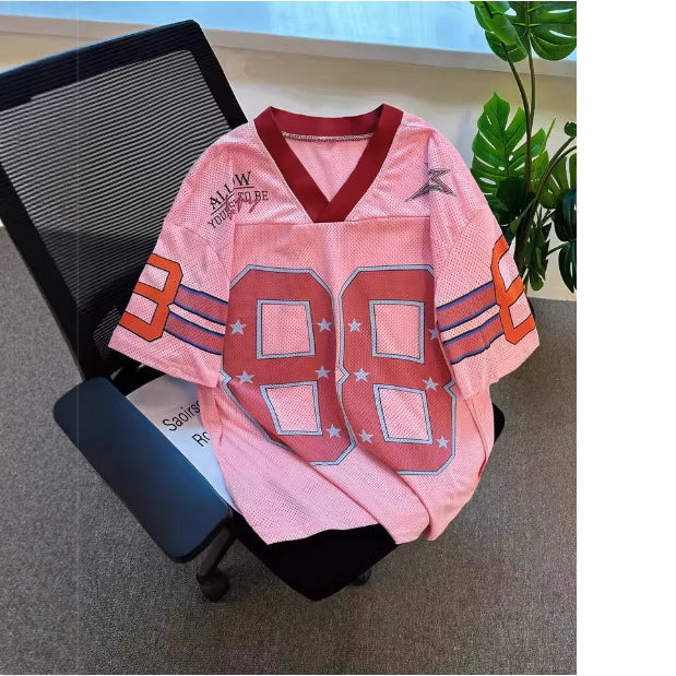 V-neck Loose Digital Printing Hollow Breathable Sports T-shirt